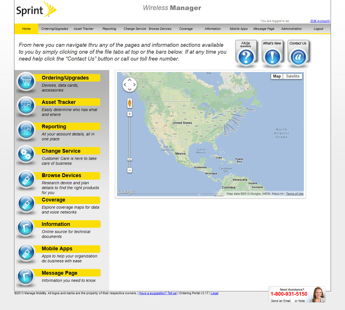First impressions are important, and ManagedTel was not making a good one. The previous dashboard did not feature any meaningful content. It was merely repeating the topbar navigation along the left side and presenting an unmarked instance of Google Maps, so it effectively served the same utility as a blank page.