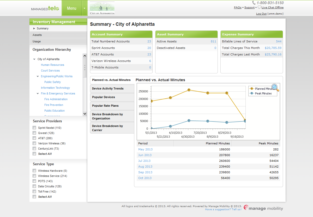 Our team used a handful of third-party libraries for some page components, such as the FusionCharts library for the data charts. I also upgraded our license for FusionCharts to the latest version and made extensive customizations based on their documentation so the charts would fit in with the ManagedTel visual style.